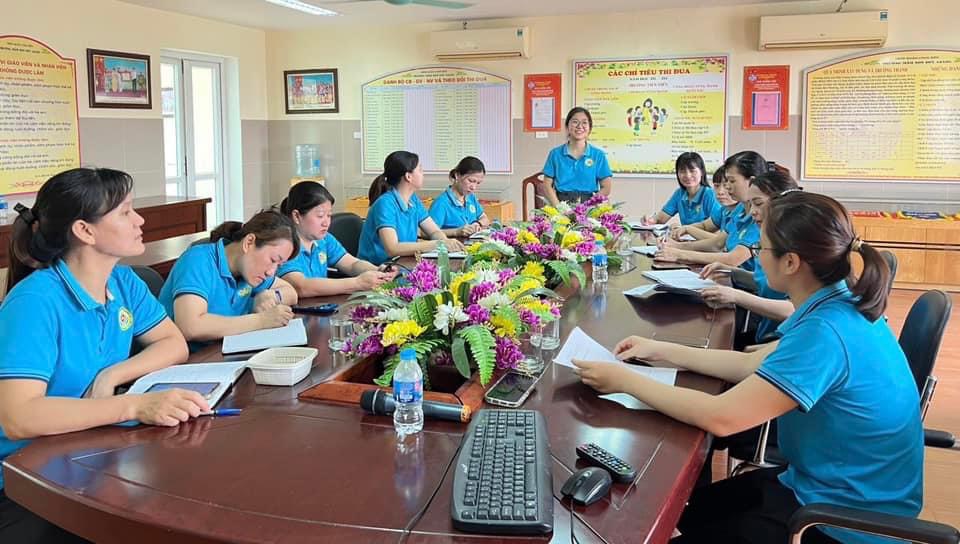 Ngày 14/8/2024, tổ chuyên môn nhà trường tiếp tục thực hiện sinh hoạt chuyên môn với nội dung tập huấn phương pháp giảng dạy mầm non tiên tiến -“Khơi nguồn sáng tạo trong không gian kịch nghệ".