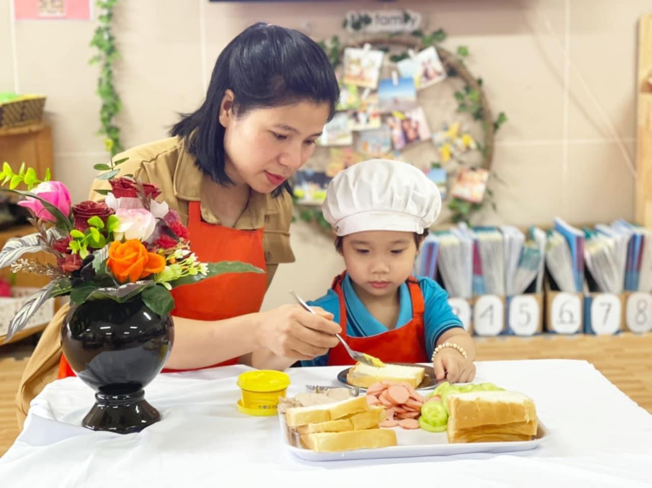 Với những nguyên liệu đã được các cô chuẩn bị sẵn như: Bánh mì 🍞, chả lụa, dưa leo 🥒, bơ thực vật, các bé lớp B2 đã tự tay làm những chiếc bánh mì sandwich kẹp theo ý thích của mình.