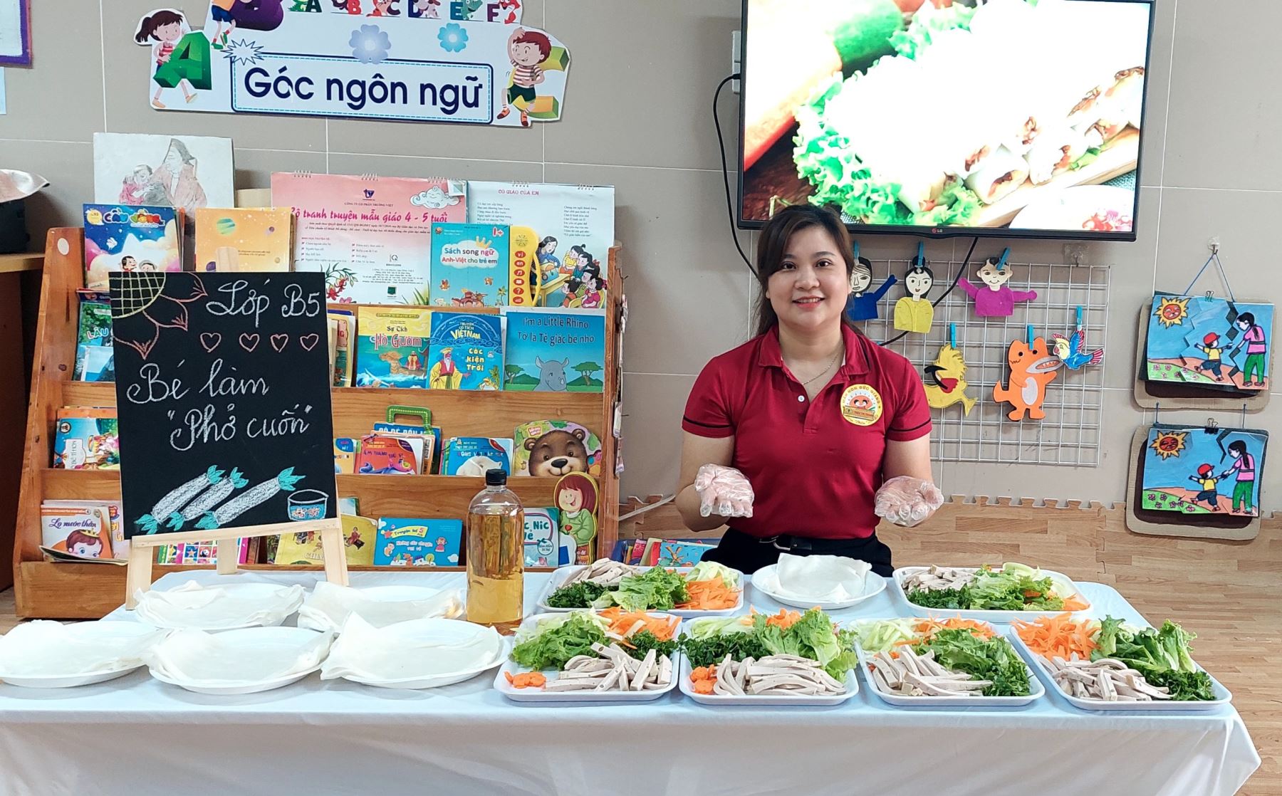 👩🍳👩🍳👩🍳Hoạt động thực hành trải nghiệm thực hành cuộc sống của các bé lớp B5 luôn là một trong những giờ học vô cùng hấp dẫn, thu hút sự tham gia nhiệt tình của các bé. Đến với hoạt động hôm nay, các bé lớp mẫu giáo nhỡ B5 đã được cùng cô thực hành làm món “Phở cuốn”. Tham gia hoạt động này các bé được khám phá thế giới nhiều màu sắc và phong phú của các loại rau, củ, quả, giò lụa... được làm quen với việc tự tay làm món mà mình yêu thích khiến cho các bé ai cũng vô cùng hào hứng và say mê. Nhìn những đôi tay vụng về chăm chú cuốn từng bánh phở trông mới đáng yêu làm sao.