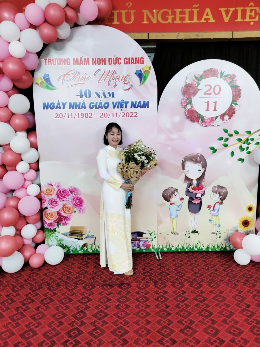 Nhớ lại năm 11/2011, cô về trường mầm non Đức Giang khi vừa tròn 22 tuổi. Những ngày đầu về trường, cô bỡ ngỡ vì môi trường làm việc mới nhưng với kinh nghiệm, sự kiên trì và đức tính chịu khó, ham học hỏi nên đã rất nhanh hòa nhập, bắt nhịp được với các công việc.
