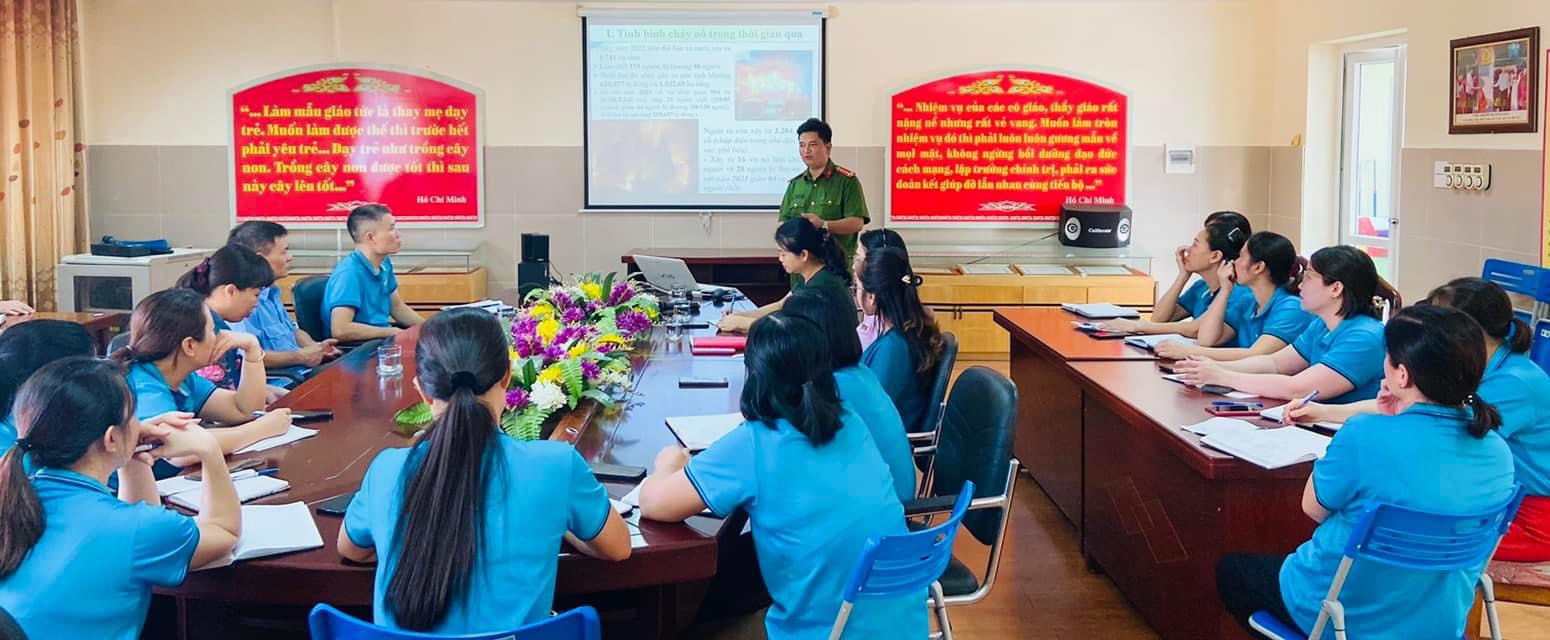 Buổi tập huấn đã trang bị cho CBGVNV các kiến thức hữu ích về phòng cháy chữa cháy, các nội dung tóm tắt về các loại đám cháy, nguyên nhân gây cháy, và quy trình phòng cháy chữa cháy.