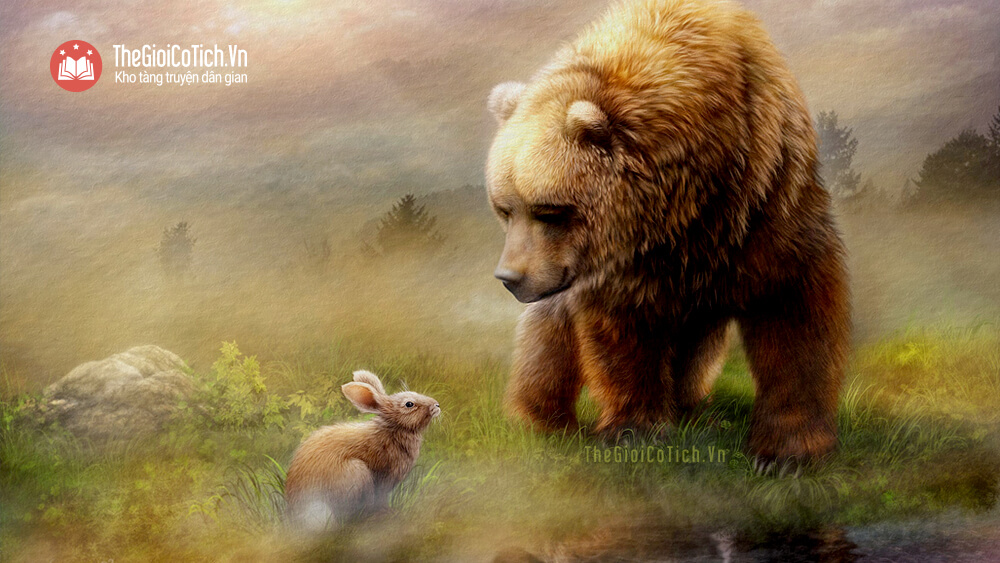 Vừa nói, Gấu vừa xông lại phía Thỏ non.