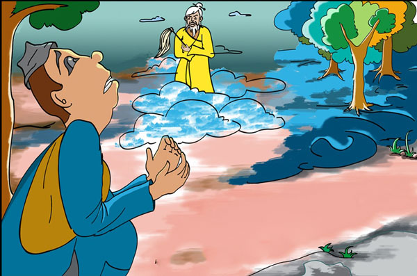 Ngày xưa, có hai vợ chồng một người nghèo khó tên là Thạch Sùng. Họ sống chui rúc trong một túp lều gần chợ, xin ăn qua ngày. Cuộc sống thật là vất vả. Nhưng Thạch Sùng là người có chí kinh doanh lớn, lại có nhiều thủ đoạn. Từ lâu hai vợ chồng ăn nhịn để dành, lần hồi góp nhặt một số vốn chôn ở góc nhà. Số tiền ấy ngày một lớn mãi lên. Nhưng họ vẫn giả bộ nghèo khó, làm nghề hành khất như cũ. Một hôm Thạch Sùng đi ăn xin về khuya. Dọc theo bờ sông ông trông thấy hai con trâu từ dưới nước lội lên và húc nhau chí tử. Đoán biết ấy là điềm trời sẽ mưa lụt to, nên từ đó có bao nhiêu tiền chôn, ông đào lên đong gạo tất cả. Quả nhiên, tháng Tám năm ấy trời làm một trận lụt kinh khủng, nước lênh láng khắp mọi miền: mùa màng, nhà cửa và súc vật v.v… đều trôi nổi. Nạn đói đe dọa khắp mọi nơi. Giá gạo từ một tăng lên gấp mười rồi dần dà tăng lên gấp trăm. Thế mà vẫn không ai có gạo để bán.