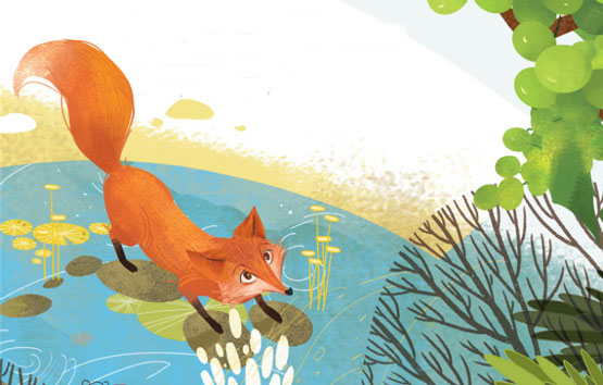 Đây là một câu truyện cổ tích về loài vật kể về một con cáo bắt gặp một chùm nho chín đỏ căng mọng hấp dẫn khiến cáo thèm nhỏ rãi nên đã có ý định nhảy lên để hái chùm nho. Vì khoảng cách của cáo và chùm nho khá xa nên nó đã đi xa gốc cây một khoảng để lấy được đà nhảy lên hái chùm nho, nhưng lần nhảy đầu tiên thì cáo không với tới chỉ cần một xíu nữa là có thể hái được chùm nho.