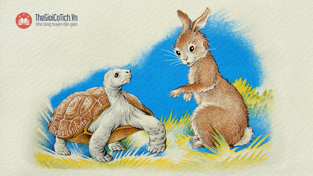 Rùa chạy thật nhanh sang nhà Thỏ, đến hôm sau thì tới.