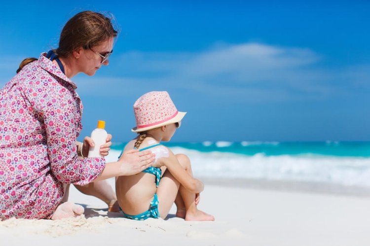 Khi lựa chọn kem chống nắng, hãy chắc chắn yếu tố chống nắng (SPF) ít nhất là 25. Cơ quan y tế khuyến cáo, bạn nên thoa kem chống nắng cho con mỗi tiếng đồng hồ hoặc nhiều hơn nếu bé vui chơi với nước.