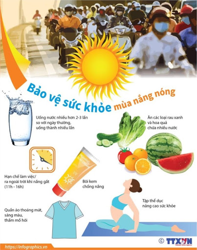Luôn luôn tăng cường lượng nước cần thiết cho cơ thể, đặc biệt là những loại nước uống giàu khoáng chất và nhiều vitamin như các loại nước ép trái cây, nước cam tươi, nước dừa tươi, nước sôi nguội...giúp cơ thể trẻ luôn luôn mát mẻ và tăng cường sức khỏe để chống chọi với bệnh tật.
