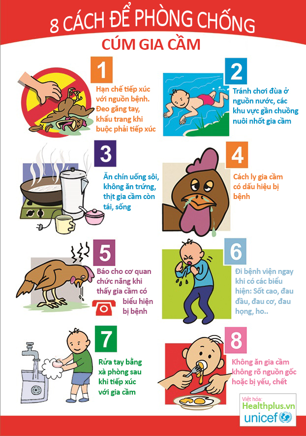- Rửa tay bằng nước sạch và xà phòng sau khi tiếp xúc với gia cầm, trước khi ăn.
