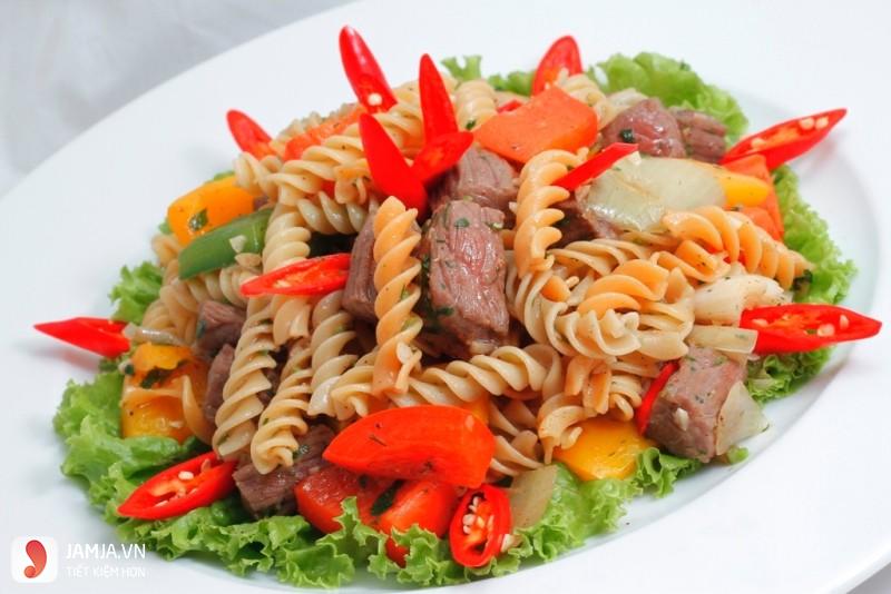 – Trong quá trình xào, bạn nên để lửa vừa để món ăn có thể chín mà nui vẫn giữ được độ giòn cần thiết.