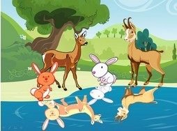 Sơn Dương chạy đến nhìn xuống hồ nước nhưng chẳng thấy Thỏ Nâu mà lại thấy một bạn Sơn Dương. Sơn Dương vội đi gọi Nai Vàng: