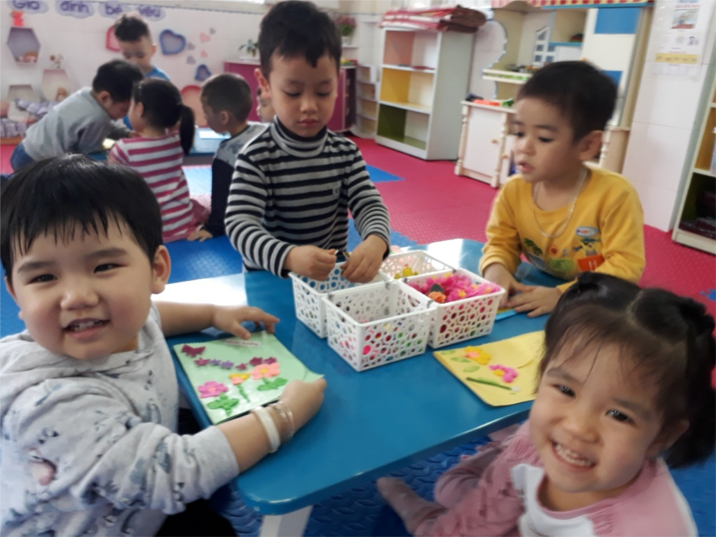 Cuối tiết học các bé khoe sản phẩm của mình