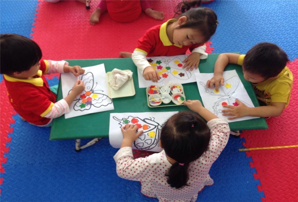 Trẻ tô màu trang trí con bướm