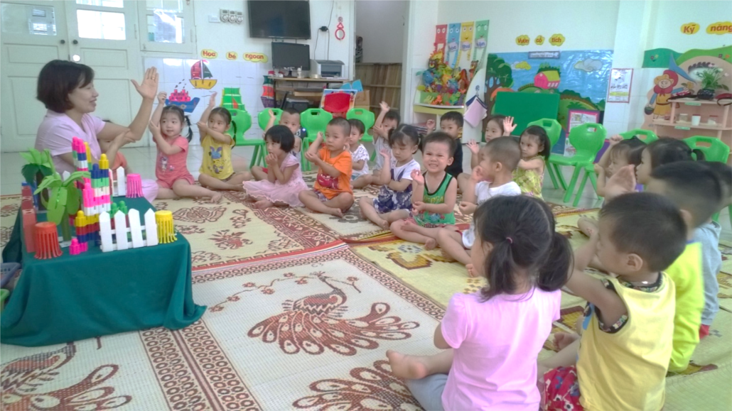 Ngày 19/9/2017, các bé lớp mẫu giáo Bé C2 được tham gia hoạt động khám phá đồ chơi góc xây dựng. Các bé lên lớp mới được làm quen với cô giáo, các bạn mới, lớp học, góc chơi… mọi thứ đều mới và lạ lẫm với các con. Tiết học khám phá đồ chơi góc xây dựng sẽ giúp các con hiểu biết sâu hơn về góc chơi xây dựng và trẻ có biểu tượng với những đồ chơi đó. Trong tiết học, trẻ được quan sát, cầm, nắm, sờ những đồ chơi mà hàng ngày trẻ chơi nhưng không để ý. Qua đó trẻ biết tác dụng của từng loại đồ chơi và cô còn hướng dẫn trẻ cách bảo quản và sử dụng đồ chơi. Cô cho trẻ thực hành: trẻ chơi cùng nhau, khi chơi xong cô dạy trẻ cất đồ chơi đúng nơi quy định. Qua tiết học này các bé biết chơi cùng nhau và biết sắp xếp, bảo quản đồ dùng đồ chơi đúng nơi quy định. Sau đây là một số hình ảnh của tiết học: