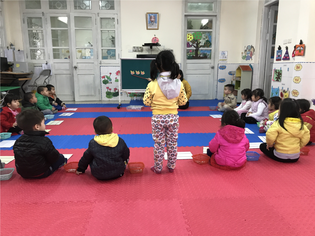 Trong chương trình giáo dục mầm non mới hiện nay việc dạy trẻ làm quen với toán đóng vai trò trong việc cung cấp kiến thức ban đầu cho trẻ. Làm quen với toán ngay từ tuổi mầm non là việc hoàn toàn đúng đắn và cần thiết giúp trẻ tìm tòi, quan sát, so sánh và hình thành ban đầu về toán như: số lượng, kích thước, hình dạng. Ngày 16 tháng 01, các bé lớp mẫu giáo bé C 3 đã được cô giáo dạy “ đếm trên đối tượng trong phạm vi 3”.
