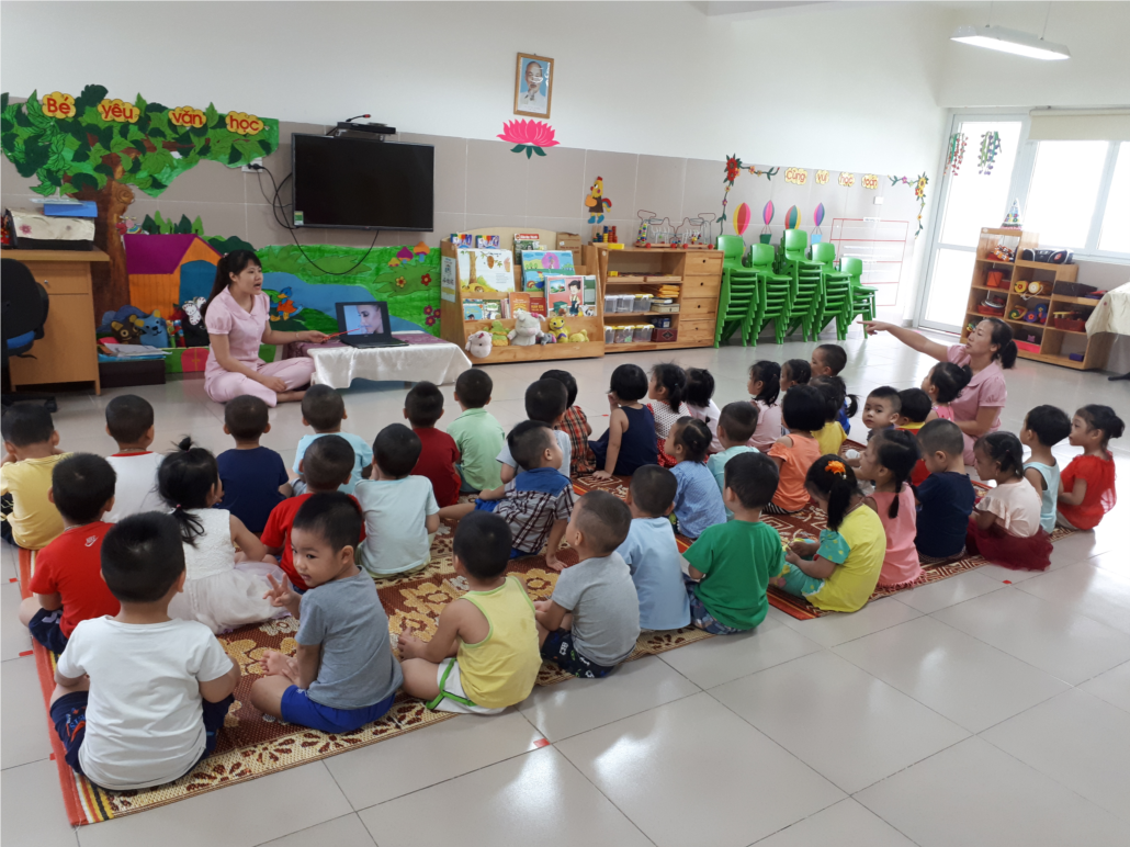 Sáng nay ngày 26/9/2017, cô và trò lớp MGB C4 cùng nhau tìm hiểu và khám phá lợi ích của “cái mũi”. Thông qua hoạt động giúp trẻ biết tên gọi của cái mũi, biết mũi là một giác quan của cơ thể gọi là “khứu giác”, trẻ biết tác dụng của cái mũi là: để thở, để ngửi, phân biệt các mùi khác nhau. Từ đó giáo dục trẻ biết các cách để bảo vệ và giữ gìn cái mũi luôn sạch sẽ. Các cô đã chuẩn bị rất nhiều hình ảnh để trẻ quan sát, chuẩn bị hoa tươi, quả bưởi, quả xoài, nước lavie để trẻ được ngửi và phân biệt các mùi khác nhau.