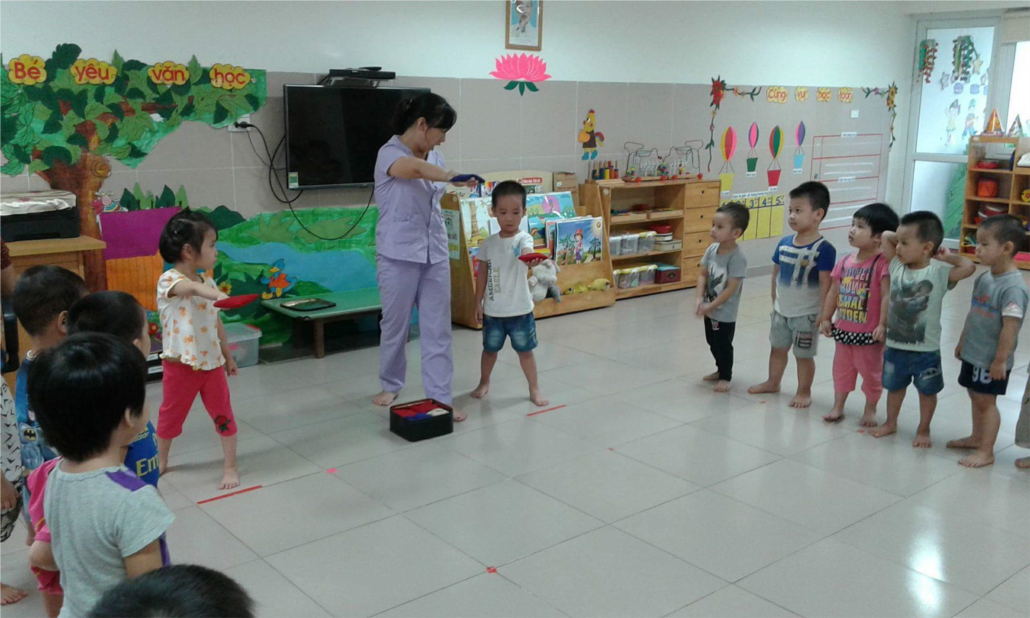 Hôm nay các bé lớp C4 cùng nhau thực hiện vận động cơ bản “Ném xa bằng một tay. Các bé tích cực hứng thú tham gia vào hoạt động.