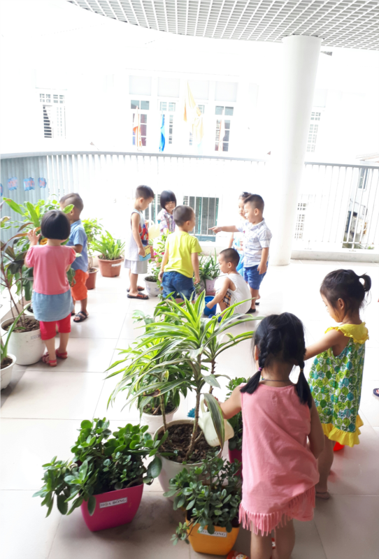 Sáng nay 13/9, cũng như mọi ngày các bé lớp mẫu giáo Bé C4 cùng nhau ra góc thiên nhiên tự tay nhổ cỏ, nhặt lá cây, lau lá, tưới cây, tỉa lá úa cho những cây xanh của lớp mình. Những buổi hoạt động ngoài trời này giúp trẻ hình thành kỹ năng biết bảo vệ và chăm sóc môi trường xung quanh trẻ.