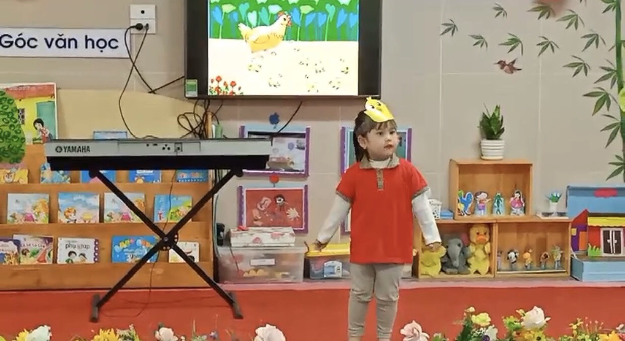 Hôm nay, với tiết hội giảng dạy hát " Đàn Gà Con" của cô Phạm Thị Trà My đã giúp cho trẻ cảm nhận được sự nghộ nghĩnh , đáng yêu của những chú gà con qua giai điệu của bài hát đồng thời cũng nhắn gửi tới tất cả các bạn nhỏ C4 hãy luôn ngoan ngoãn ,vâng lời ông bà bố mẹ của mình giống như những chú gà con trong bài hát .