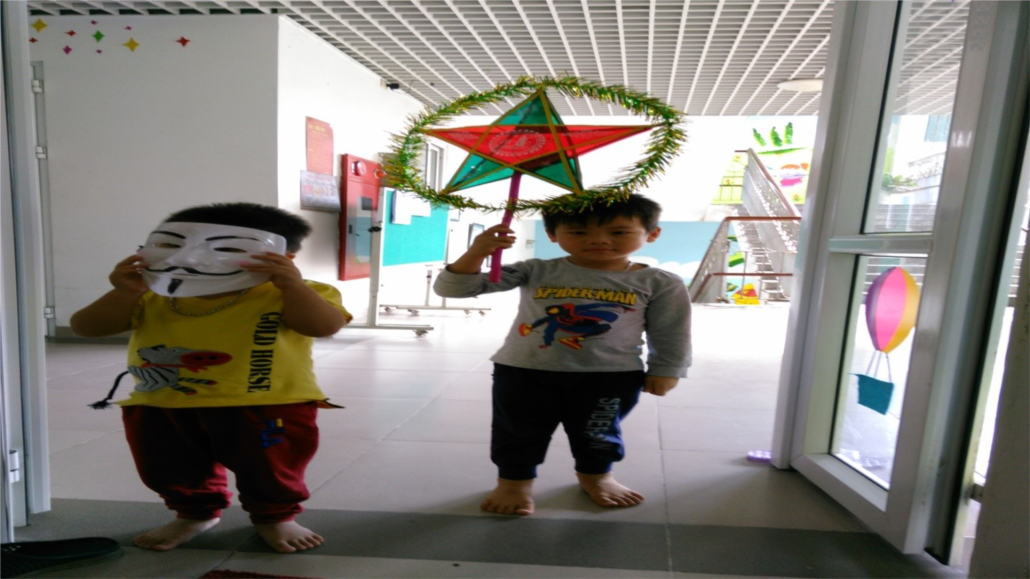 À , các bạn ấy được các cô giáo dạy những bài hát , múa về trung thu này , được các cô hướng dẫn làm những chiếc đèn lồng thật xinh xắn bằng giấy .