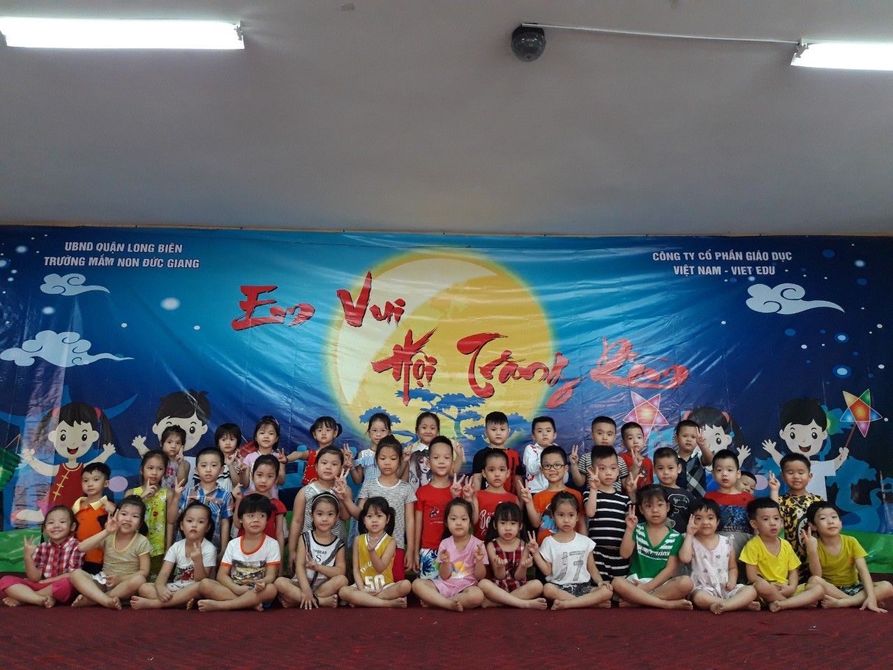 Trung thu năm nay thật sự là một ngày hội tưng bừng đối với các bạn lớp mẫu giáo lớn A4 trường mầm non Đức Giang. Các bạn được cô giáo hướng dẫn vẽ, tô màu, trang trí lồng đèn, chong chóng, mặt nạ, quạt giấy khám phá những trò chơi truyền thống, tập hát những bài hát trung thu, đặc biệt các bạn còn được tự tay làm những chiếc bánh dẻo thơm ngon tặng ông bà, bố mẹ.