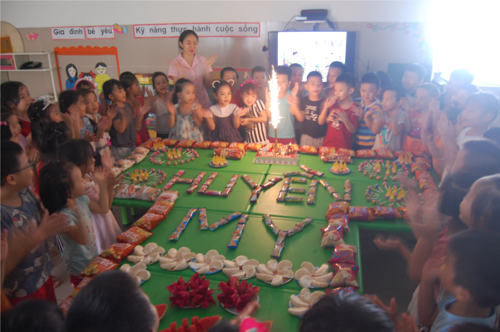 Sinh nhật năm nay đánh dấu một “cột mốc” quan trọng của Huyền My, con tròn 5 tuổi, là học sinh khối mẫu giáo lớn và trong tương lai ngày sinh nhật năm sau con đã là cô học sinh tiểu học. Các cô giáo lớp A4 luôn coi tất cả các bạn học sinh như chính con ruột của mình và mong muốn những điều tốt đẹp nhất đến với các con vậy nên trong ngày sinh tròn 5 tuổi của Huyền My các cô đã rất tâm huyết để Huyền My có một sinh nhật ý nghĩa. Các cô giáo rất tự hào và vui mừng khi được góp một phần vào ngày kỉ niệm đáng nhớ của các con.