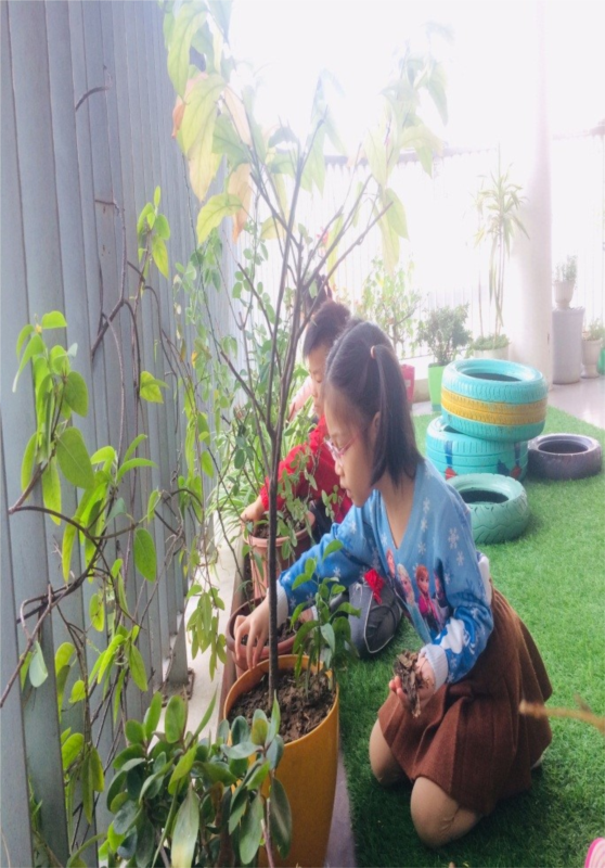 Cứ thứ 5 hàng tuần lớp lớn A5 lại cùng nhau nhặt lá úa, nhổ cổ, lau lá cây để cùng nhau bảo về chăm sóc cho góc thiên nhiên của nhà trường luôn xanh - sạch - đẹp.
