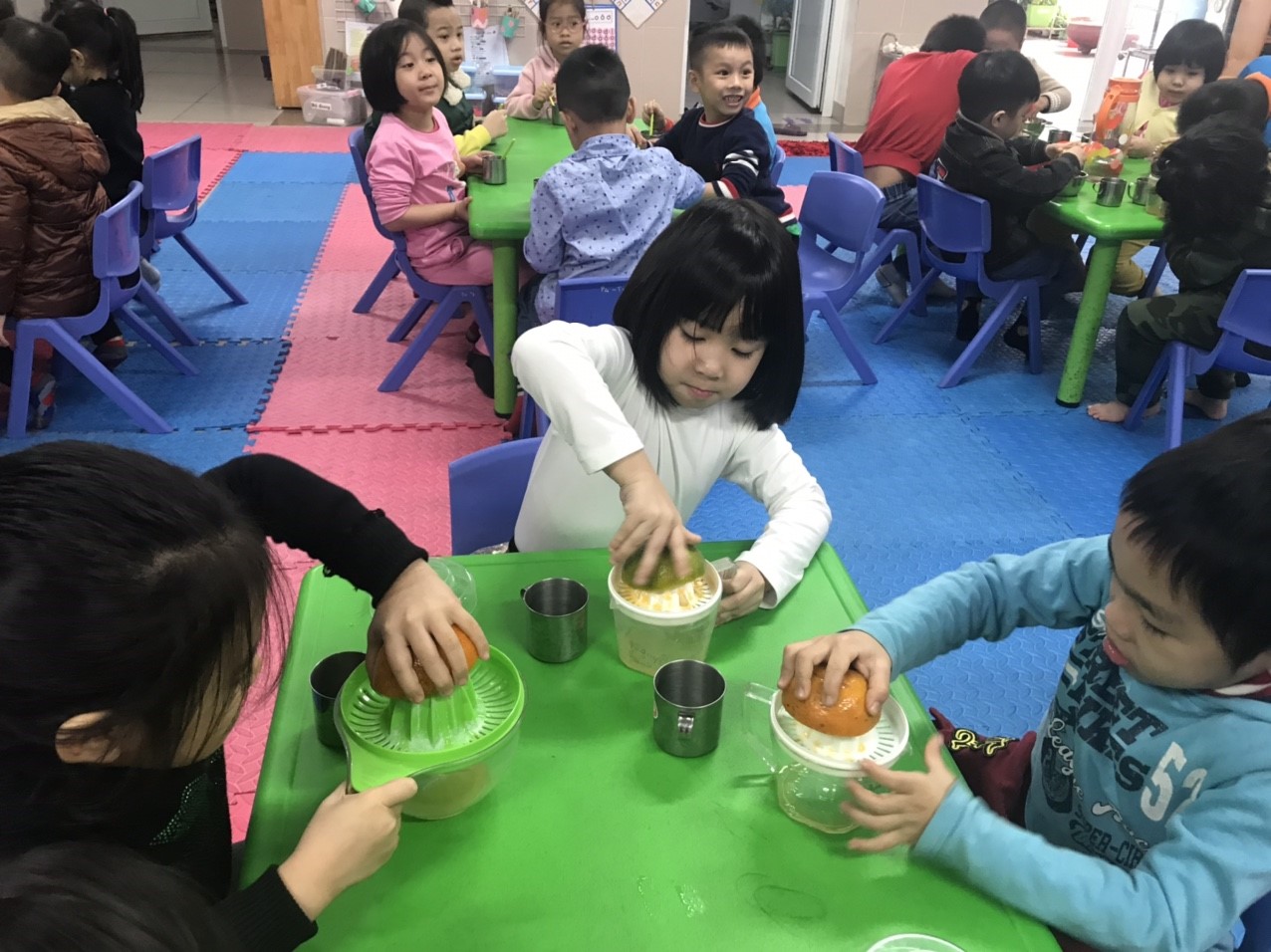 Mỗi ngày đến trường là một ngày vui, và hôm nay đến lớp cô giáo dành cho các bạn lớp mẫu giáo lớn A5 điều thú vị đó là hoạt động pha nước cam. Hoạt động pha nước cam giúp trẻ được trải nghiệm thực tế qua đó các kỹ năng của trẻ càng trở nên thành thạo và khéo léo hơn theo thời gian.