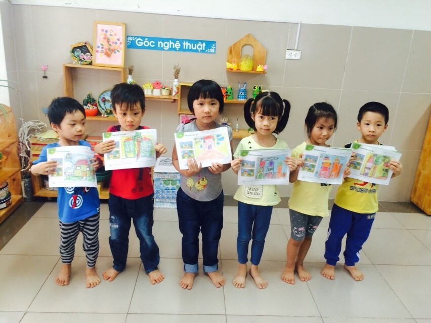Tiết học: “Vẽ ngôi nhà của bé” giúp trẻ thể hiện cảm hướng về người thần, gia đình, về ngôi nhà thân yêu. Tranh vẽ có giá trị giáo dục rất lớn về tình cảm gia đình.