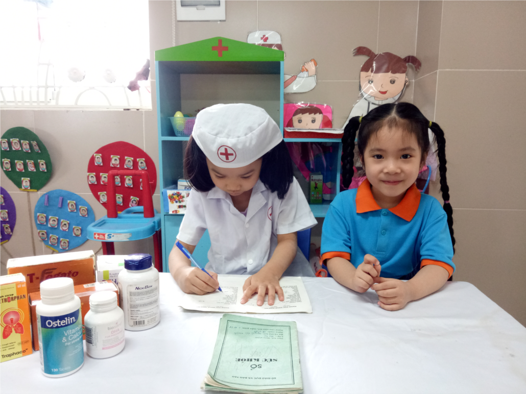Đây là những hình ảnh về thế giới hồn nhiên khi trẻ được làm bác sỹ của các bé lớp A5.