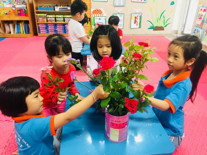 Hãy cùng cắm hoa với các bạn nhỏ lớp A6 nhé!