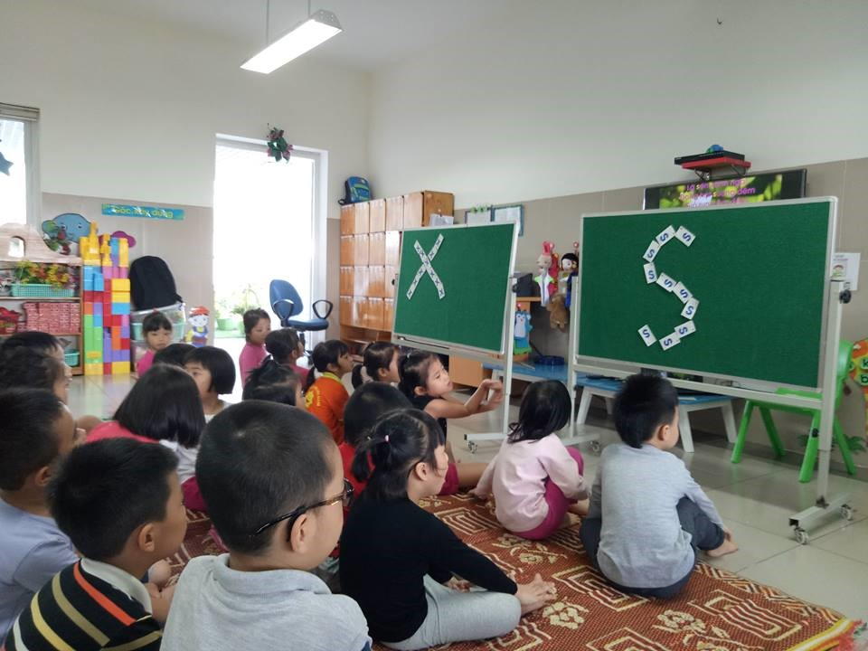 Dạy trẻ học chữ cái từ nhỏ sẽ giúp trẻ thông minh hơn nhưng việc dạy trẻ học không dễ dàng thực hiện. Bởi tùy thuộc vào từng trẻ có trẻ rất thích học , cũng có trẻ không chịu phối hợp cùng cô giáo.Đứng trước khó khăn đó thì các cô giáo lớp mẫu giáo A6 trường mầm non Đức Giang đã tổ chức các giờ học làm quen chữ cái sao cho trẻ học thông qua các nội dung trò chơi nên trẻ vô cùng hứng thú.Trẻ gọi tên , nhận biết, phát âm rõ chữ cái .Đặc biệt nôi dung chơi với chữ cái giúp trẻ nhớ lâu, nhớ kĩ đặc điểm riêng của từng chữ cái được học mà khó bị nhầm lẫn. Một số các trò chơi như chọn chữ cái, xếp tạo hình chữ cái to từ các chữ cái nhỏ,tạo hình chữ cái từ dây kẽm hoặc từ cơ thể bé, tô chữ rỗng, điền chữ còn thiếu….Và sau đây là một số hình ảnh của hoạt động cho trẻ làm quen với chữ cái s, x tại lớp mẫu giáo A6 mà trẻ vô cùng hứng thú.