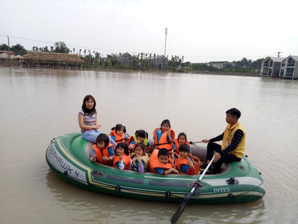 Các bé được tham gia nhiều hoạt động phong phú như tham quan vườn rau thủy canh, khám phá cách thức gieo trồng các loại rau quả, học cách cho ăn gia cầm và vật nuôi, đi thuyền, tập làm đầu bếp….