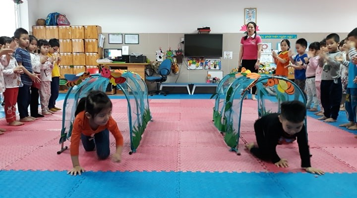Giáo dục thể chất cho trẻ mầm non mang nhiều ý nghĩa vì khi ấy trẻ đang ở những năm đầu đời của sự phát triển, những năm tháng định hình tính cách cũng như suy nghĩ sau này của trẻ. Nên việc tiếp cận nhiều với các môn thể dục thể thao giúp trẻ rèn luyện được nhiều đức tính tốt đẹp, đặc biệt là thói quen rèn luyện thể thao. Hơn thế nữa, việc tiếp xúc nhiều với các môn thể thao sẽ tạo điều kiện cho sự phát triển về thể lực của trẻ, là tiền đề để phát triển trí lực. Bởi có sức khoẻ tốt thì trẻ mới có thể học tập tốt được. Các cô đã hướng dẫn các con vận động cơ bản mới có tên: bò chui qua cổng”. Dưới sự hướng dẫn tận tình của các cô nên các bạn trong lớp đều thực hiện đúng vận động một cách linh hoạt và thành thạo.Trẻ biết bò phối hợp tay nọ chân kia và bò chui qua cổng không chạm người vào cổng. thông qua vận động này giúp trẻ phát triển bắp chân, bắp tay của trẻ, rèn luyện tố chất khéo léo, nhịp nhàng.
