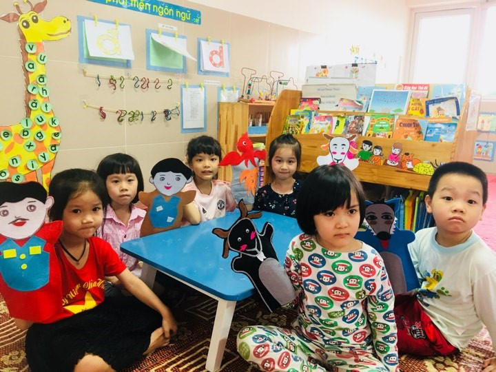 Hiểu được tầm quan trọng đó, lớp mẫu giáo lớn A6 tổ chức “Phát triển ngôn ngữ cho trẻ thông qua kể chuyện sáng tạo” nhằm giúp các bé có được một môi trường tốt nhất, tạo điều kiện cho các con có cơ hội tự do sáng tạo, tích lũy được những kiến thức về thế giới xung quanh một cách tự nhiên nhất, giúp cho trẻ mở rộng vốn từ một cách chủ động, luyện phát âm, phát triển khả năng biểu đạt,… trẻ biết trình bày ý kiến, suy nghĩ, tự tin khi kể về một sự vật hay sự kiện nào đó bằng chính ngôn ngữ của mình.