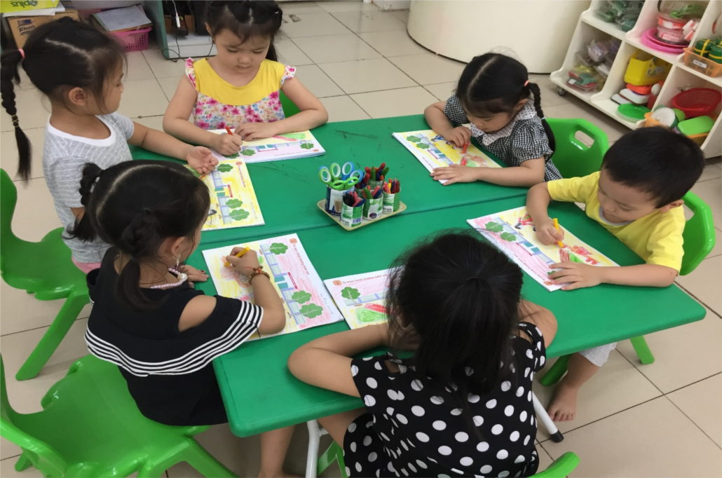 Các bé đã biết phối hợp mà sắc để tạo nên bức tranh đẹp mắt