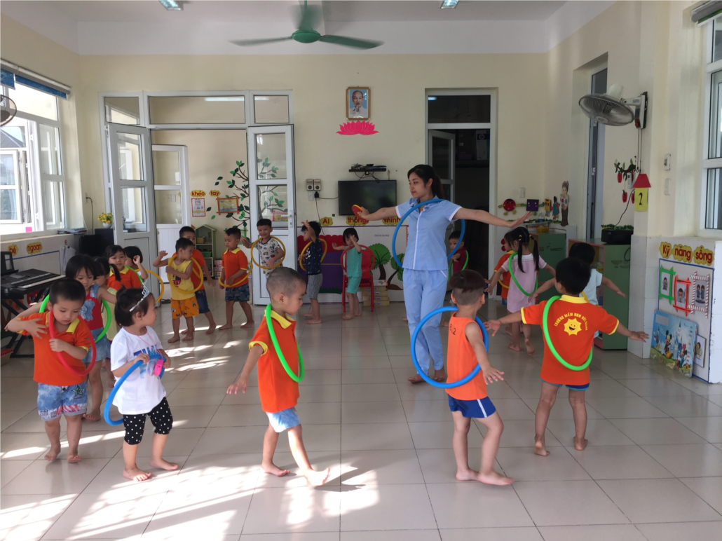 Các con rất hào hứng khi được tập thể dục với vòng