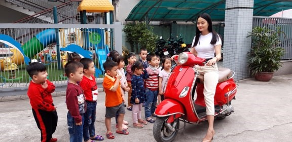 Hôm nay, các bạn nhỏ lớp B3 trường mầm non Đức Giang được các cô cho khám phá chiếc xe máy.