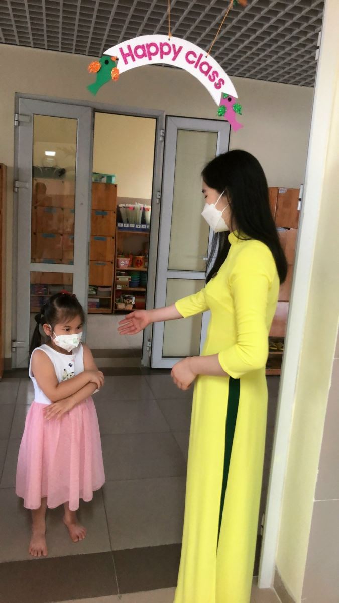 Sau những ngày nghỉ dài vì dịch bệnh, ngày 13 tháng 4 các bé lớp mẫu giáo nhỡ B4- Trường mầm non Đức Giang thân yêu trở lại lớp học trong niềm vui chào đón của các cô. Ngay từ sáng sớm các cô giáo trong lớp đã đến để chuẩn bị chu đáo những đồ dùng cần thiết để đón các con. Cặp nhiệt độ và nước sát khuẩn tay là những đồ dùng cần thiết trong thời gian này. Ngay ở cửa lớp các con được cô đo thân nhiệt và xịt rửa tay sát khuẩn, tuy các con còn bé nhưng rất ngoan và có ý thức phòng chống dịch.