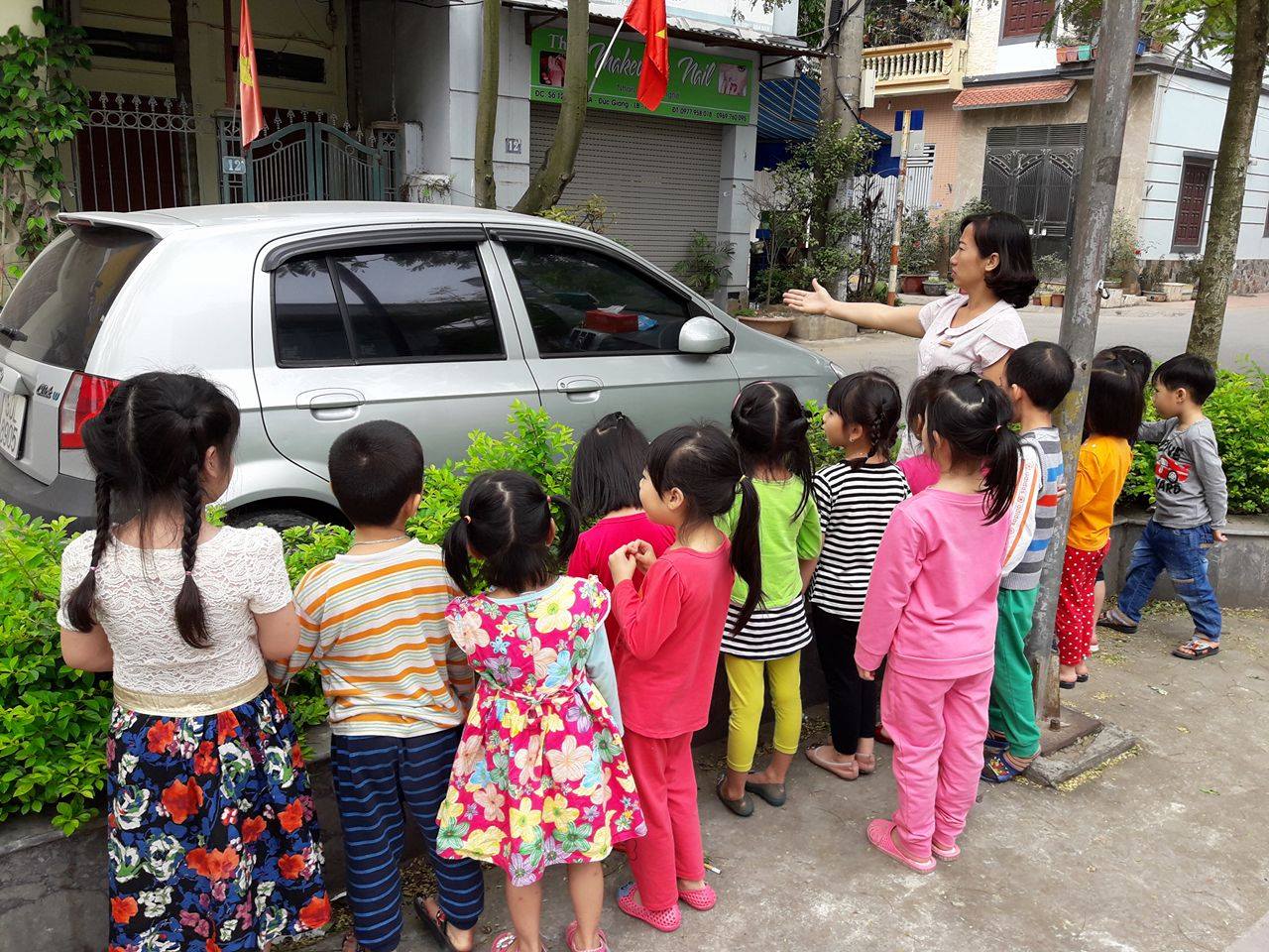 Ngày 9/ 05/ 2017, các bé lớp Mẫu giáo nhỡ B4 được tham gia hoạt động ngoài trời với những hoạt động trải nghiệm thú vị và bổ ích. Các bé được cùng cô dạo chơi tại sân của tổ dân phố, được quan sát khám phá ô tô, xe đạp là những phương tiện giao thông gần gũi với mình. Ngoài ra bé còn được chơi với các đồ chơi ngoài trời hay chơi các trò chơi dân gian như: Cắp cua bỏ giỏ, ném vòng cổ chai, đi cà kheo, “Bắt không khí vào túi ni lông”,… làm trẻ vô cùng vui thích.