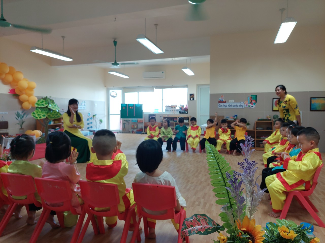 Các bạn nhỏ sôi nổi, hào hứng tham gia các hoạt động và hưởng ứng cảm xúc âm nhạc cùng cô và cô đã giáo dục yêu quý bà và biết giúp đỡ bà.