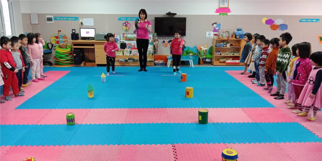 Ảnh: Trẻ tập vận động: chạy thay đổi hướng theo vật chuẩn