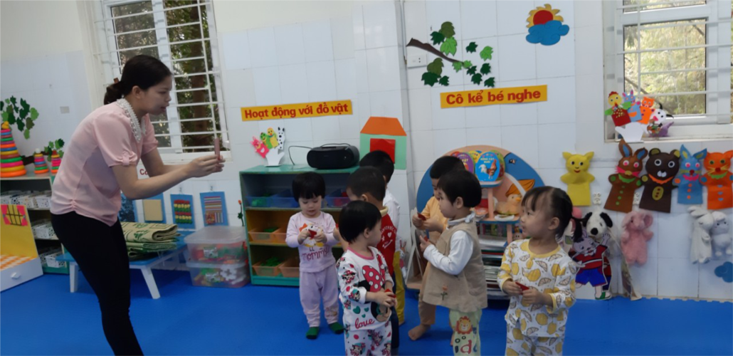 Cô dạy trẻ hát bài hát “Sắp đến tết rồi”