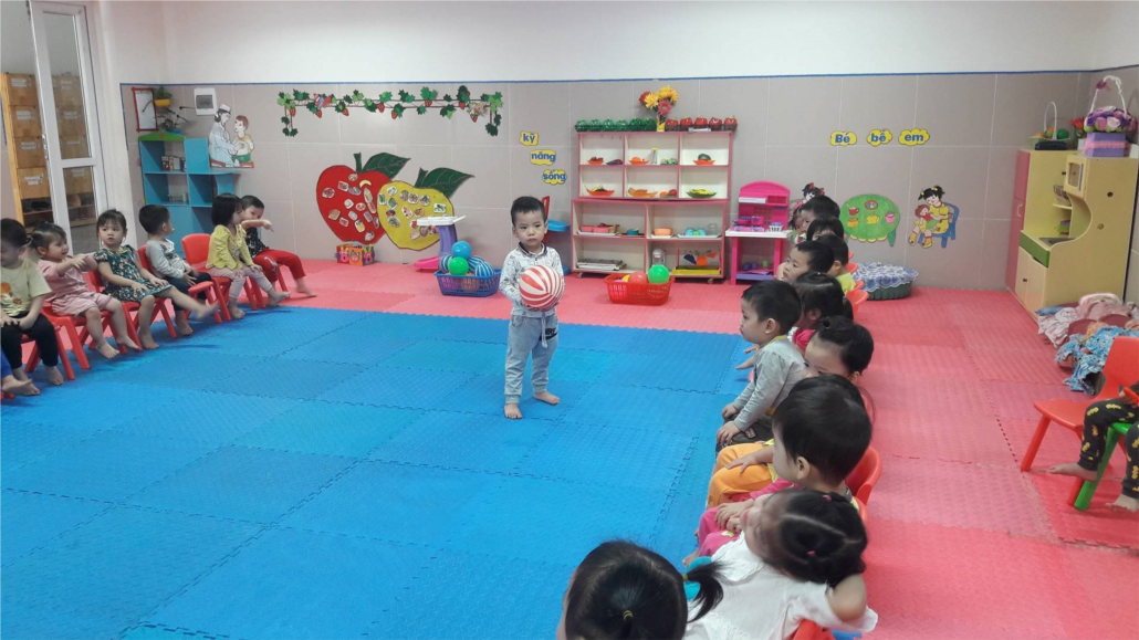 Sau đây là một số hình ảnh minh hoa về giờ thể dục: “Đi có mang vật trên tay và trò chơi: “Bắt bướm” của cô và trẻ lớp D4:
