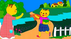 Mèo Hoa nghĩ đến trường có nhiều bạn lắm, không biết có ai khen mình không nhỉ ? ối! Nếu mà bạn nào cũng sờ vào cái đuôi của mình thì nó sẽ xấu đi mất.