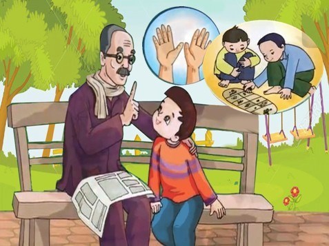 - Để cầm muỗng ăn cơm nữa ông nội ơi!