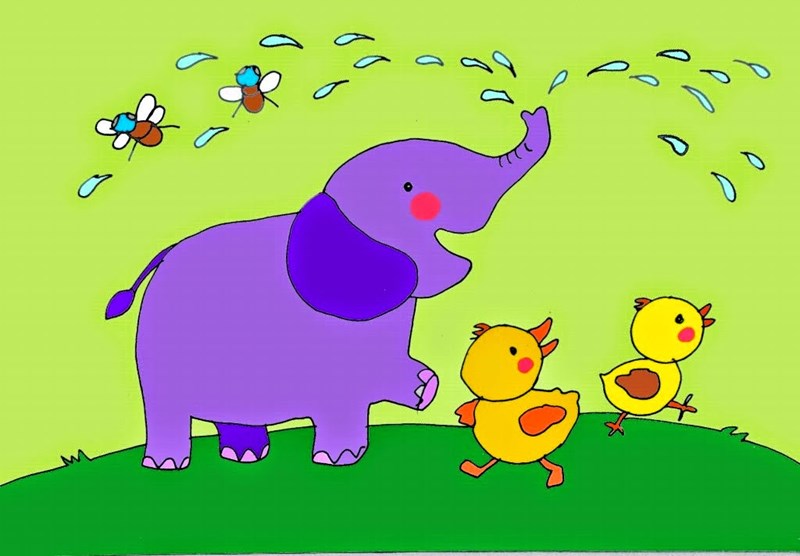 Gà và vịt con rất yêu chú voi tốt bụng. Chúng thích vui đùa và nhảy vào nằm trong lòng chú voi. Chúng cảm thấy ấm áp và hết sức an toàn.