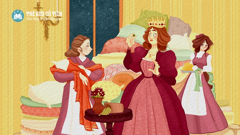 Bé Hoa ngạc nhiên nhìn xung quanh. Bé thấy bên cửa sổ một người phụ nữ, gương mặt trắng hồng và tỏa sáng như ánh trăng trên bầu trời. Cô ta khóac một chiếc áo choàng lấp lánh như những vì sao bạc. Cô nói: