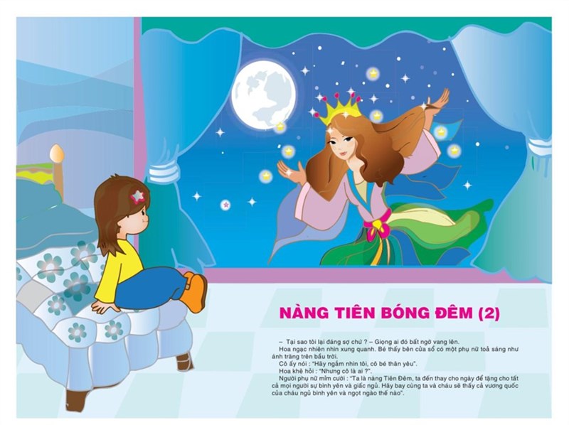 Người phụ nữ mỉm cười: - Ta là nàng tiên đêm, ta đến thay cho ngày để tặng cho tất cả mọi người sự bình yên và giấc ngủ.