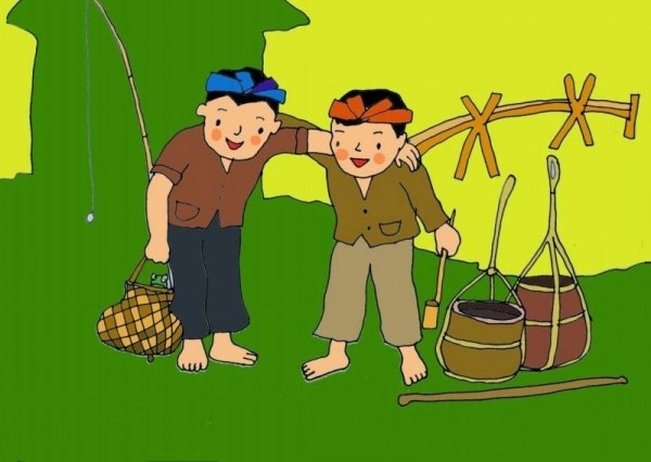 - Con nào thương mẹ hãy nghe lời mẹ lấy anh Rắn để anh trả lại rìu cho mẹ. Có rìu thì mới có củi. Anh Rắn ở gần đây. Con nào ưng thì đến ở với anh ấy.