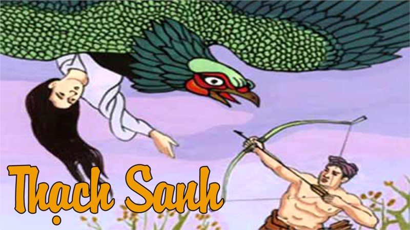Bấy giờ công chúa con vua muốn kén phò mã, bảng yết khắp dân gian, điệp gửi cùng các nước, nhưng không chọn được ai vừa ý. Một hôm công chúa đi dạo vườn hoa, bỗng con yêu tinh Ðại bàng sà xuống cắp đi mất. Tình cờ đại bàng bay ngang trên cây đa có Thạch Sanh đang ngồi thẫn thờ dưới gốc cây. Thạch Sanh thấy vậy, liền gương cung bắn một phát trúng ngay vào cánh. Nhưng đại bàng rút tên ra rồi tiếp tục bay đi, Thạch Sanh lần theo vết máu đỏ, thấy đại bàng chui vào một cái hang rất kiên cố. Chàng đánh dấu lối vào hang và trở về.